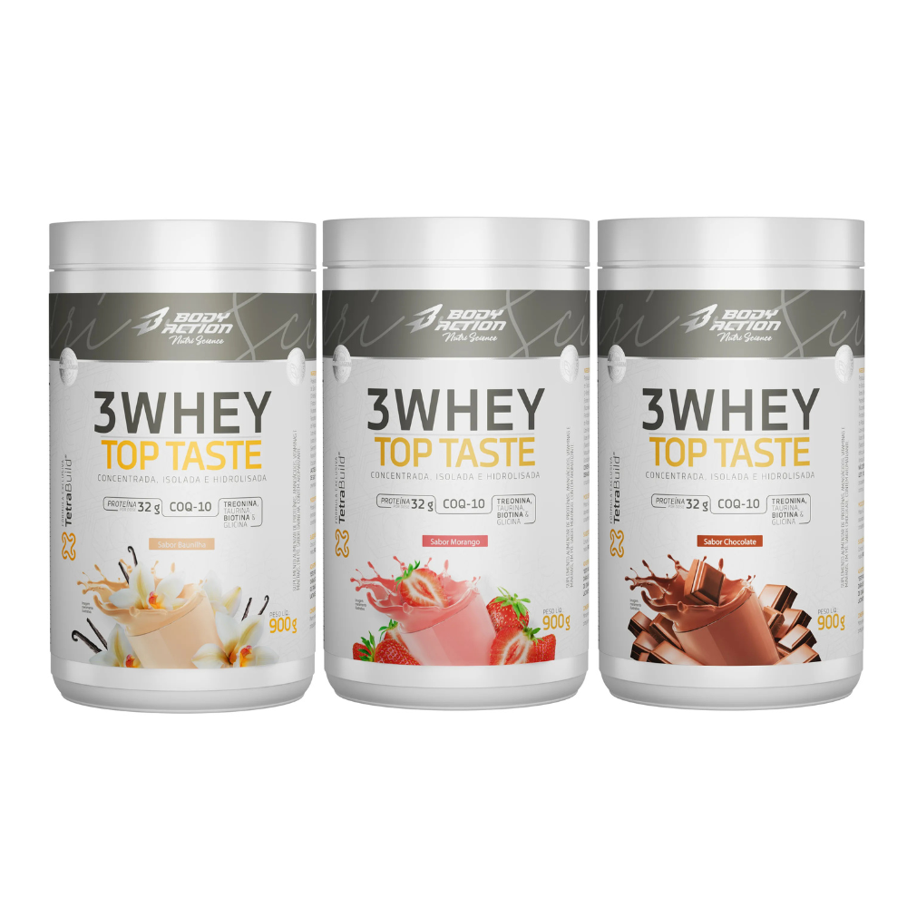 Procurando um whey saboroso, cremoso e com excelente custo-benefício? O 3 Whey Top Taste Bodyaction chegou para elevar sua rotina!