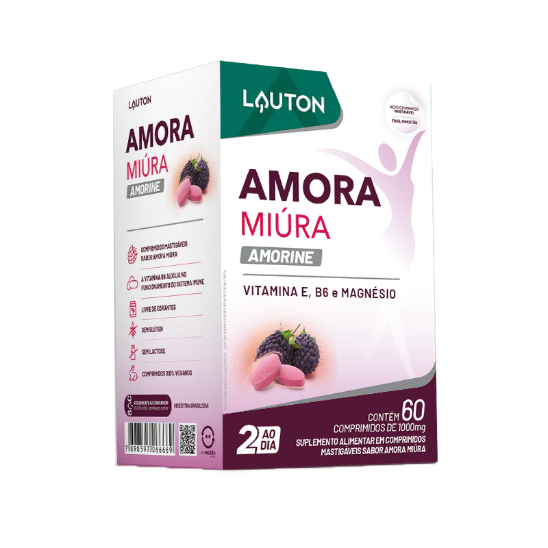 A Amora Miúra Lauton 1000mg combina a tradicional amora branca japonesa com Vitamina E, Vitamina B6 e Magnésio, nutrientes que apoiam o bem-estar físico e emocional.