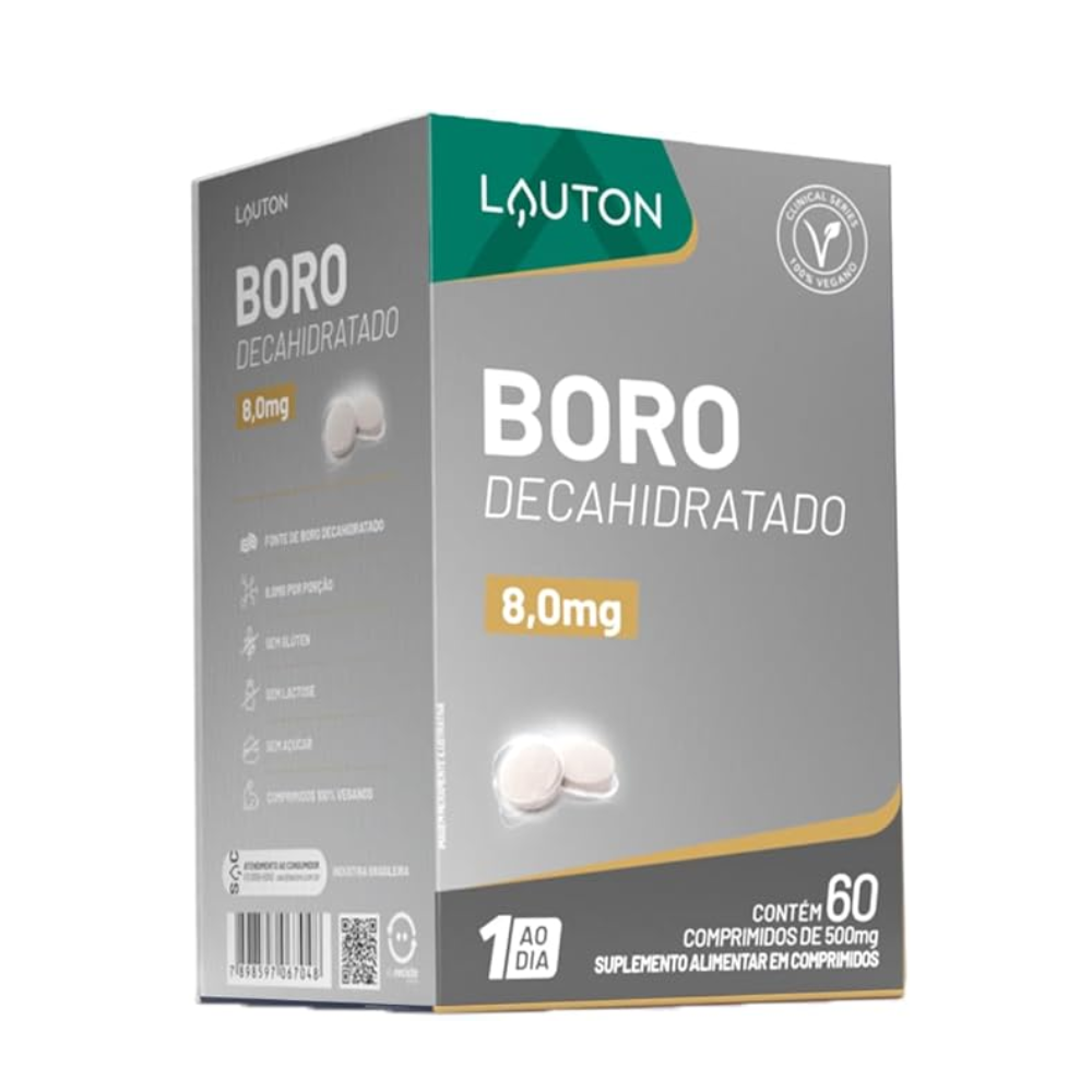 Boro Decahidratado Lauton – 60 comprimidos é um suplemento alimentar desenvolvido para complementar a ingestão diária de boro, um mineral presente naturalmente em diversos alimentos de origem vegetal.
