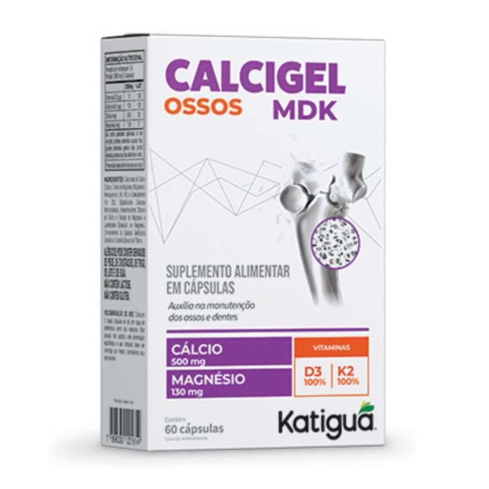 O Calcigel MDK Katiguá 750mg é um suplemento alimentar que combina Cálcio, Magnésio, Vitamina D3 e Vitamina K2, nutrientes importantes para manter uma alimentação equilibrada e saudável.