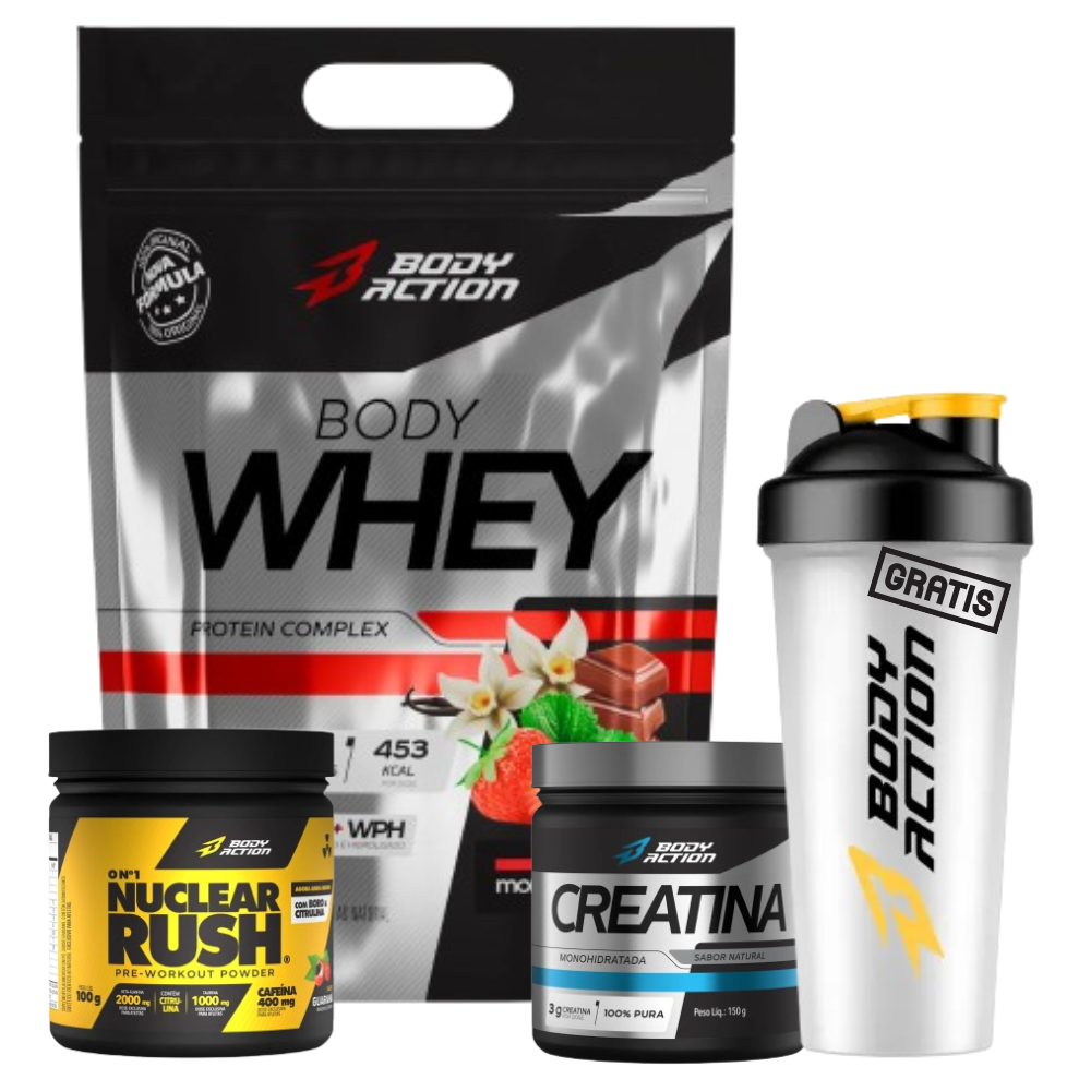O Kit Bodyaction foi desenvolvido para quem busca complementar a rotina alimentar, otimizar o consumo de nutrientes essenciais e ter mais praticidade na suplementação diária. A combinação do Body Whey, da Creatina 100%, do Pré-treino Nuclear Rush e da Coqueteleira grátis oferece uma solução completa para adultos fisicamente ativos.
