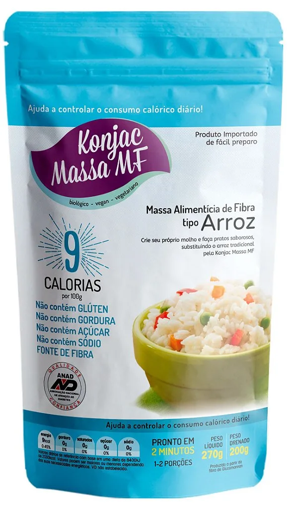 O Arroz Konjac MF é uma massa tipo arroz feita à base de konjac, ingrediente de origem natural, com baixo teor calórico e zero glúten.
