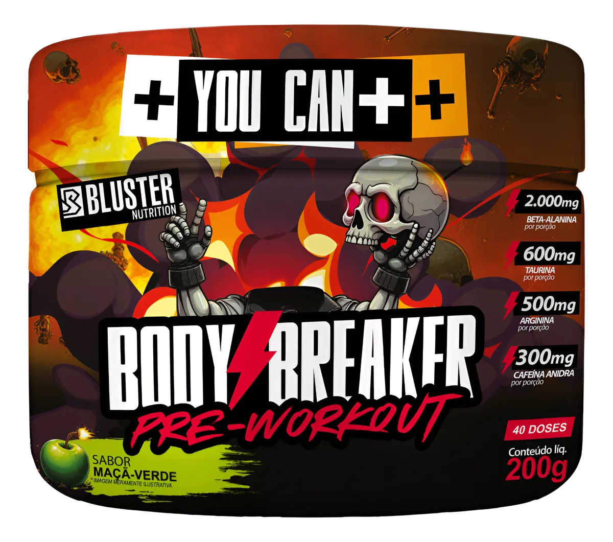 O Pré-Treino Bluster Body Breaker 200g é um suplemento desenvolvido para quem deseja incluir um pré-treino na rotina para auxiliar na disposição, concentração e preparação para treinos intensos.