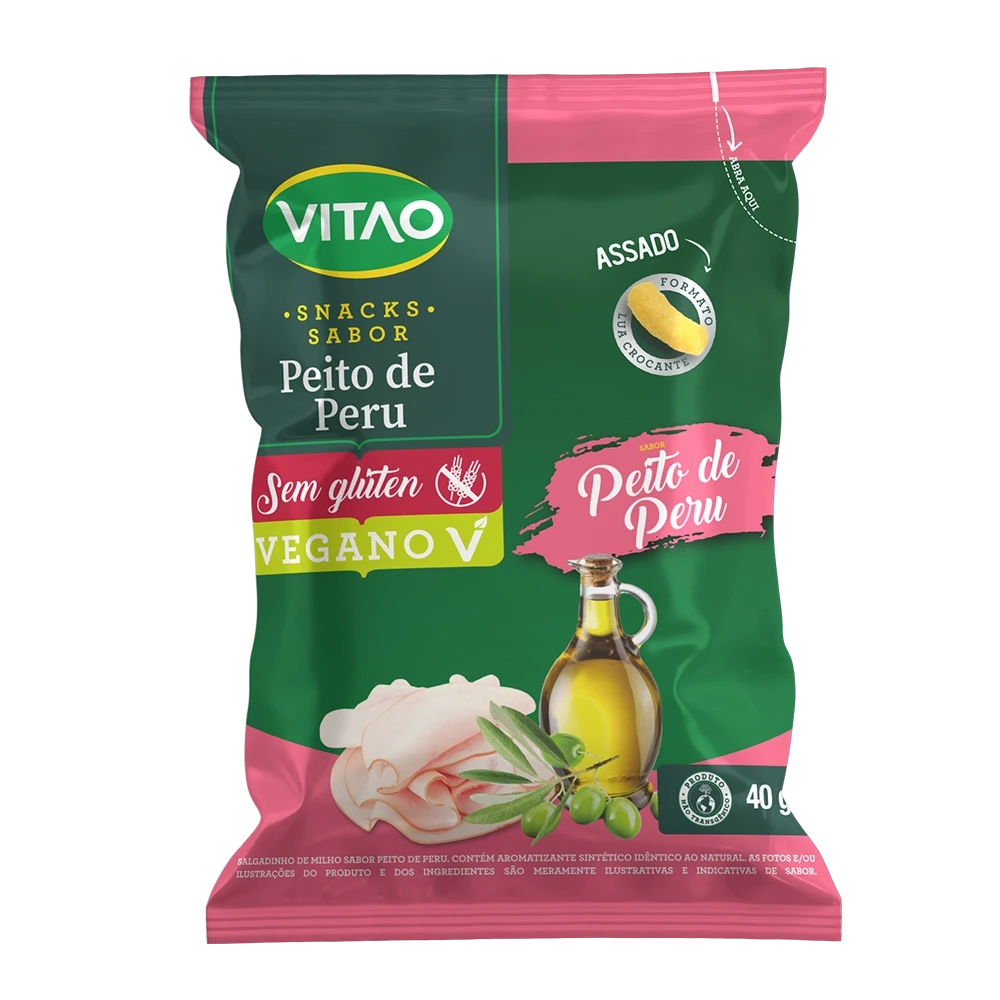 O Snack Integral Sabor Peito de Peru Vegano da Vitao é a combinação perfeita entre praticidade, crocância e nutrição. Feito com ingredientes integrais e livre de glúten, é ideal para quem busca um lanche leve e saboroso a qualquer hora do dia.